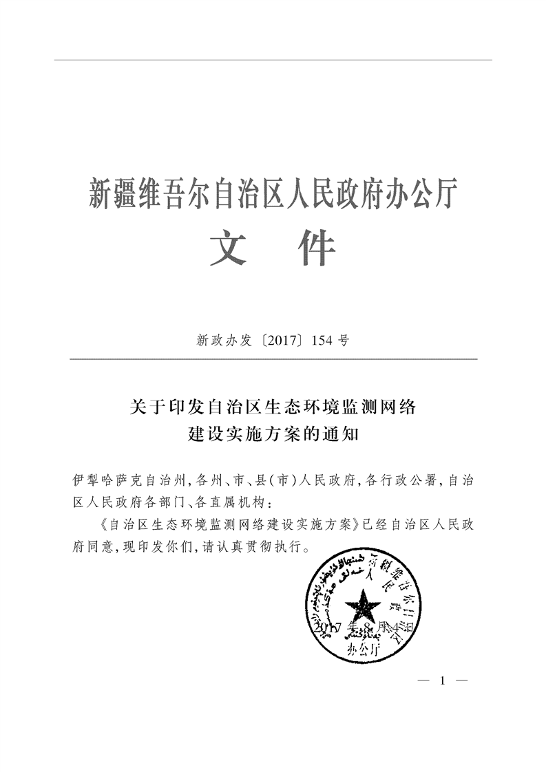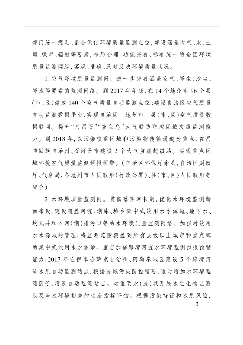 关于印发自治区生态环境监测网络建设实施方案的通知